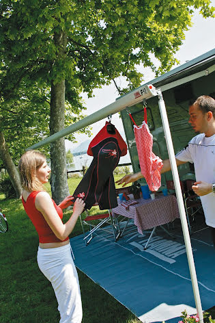 Häng upp dina tillbehör med hjälp av dessa krokar som passar din husvagns- eller husbilsmarkis. Det är en kroksats med 6 st krokar med tillhörande fästen som enkelt sätts in i markisens frontskena.