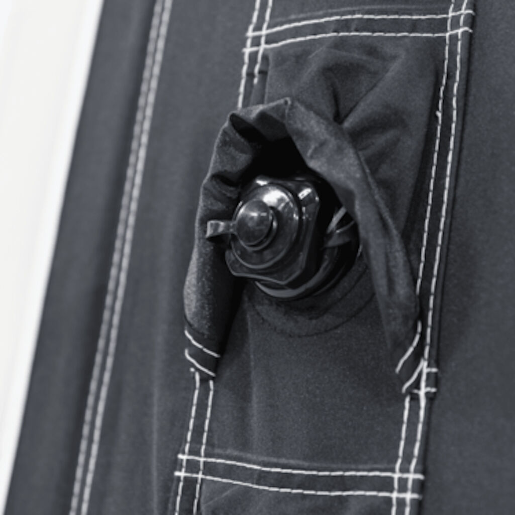 The Dometic Grande Air Tour 390 is ideal for campers seeking a quick-pitch and spacious awning with maximum comfort. With a depth of 300 cm and curved air tubes that provide excellent headroom throughout, there's ample space for furniture without feeling cramped. Dual side doors offer flexible layout options while keeping access to the caravan or motorhome easy. The awning can be fully opened via front and side panels. Both doors feature mosquito nets for great airflow without letting insects in. A draught skirt is included to prevent wind and bugs from entering under the caravan or motorhome.