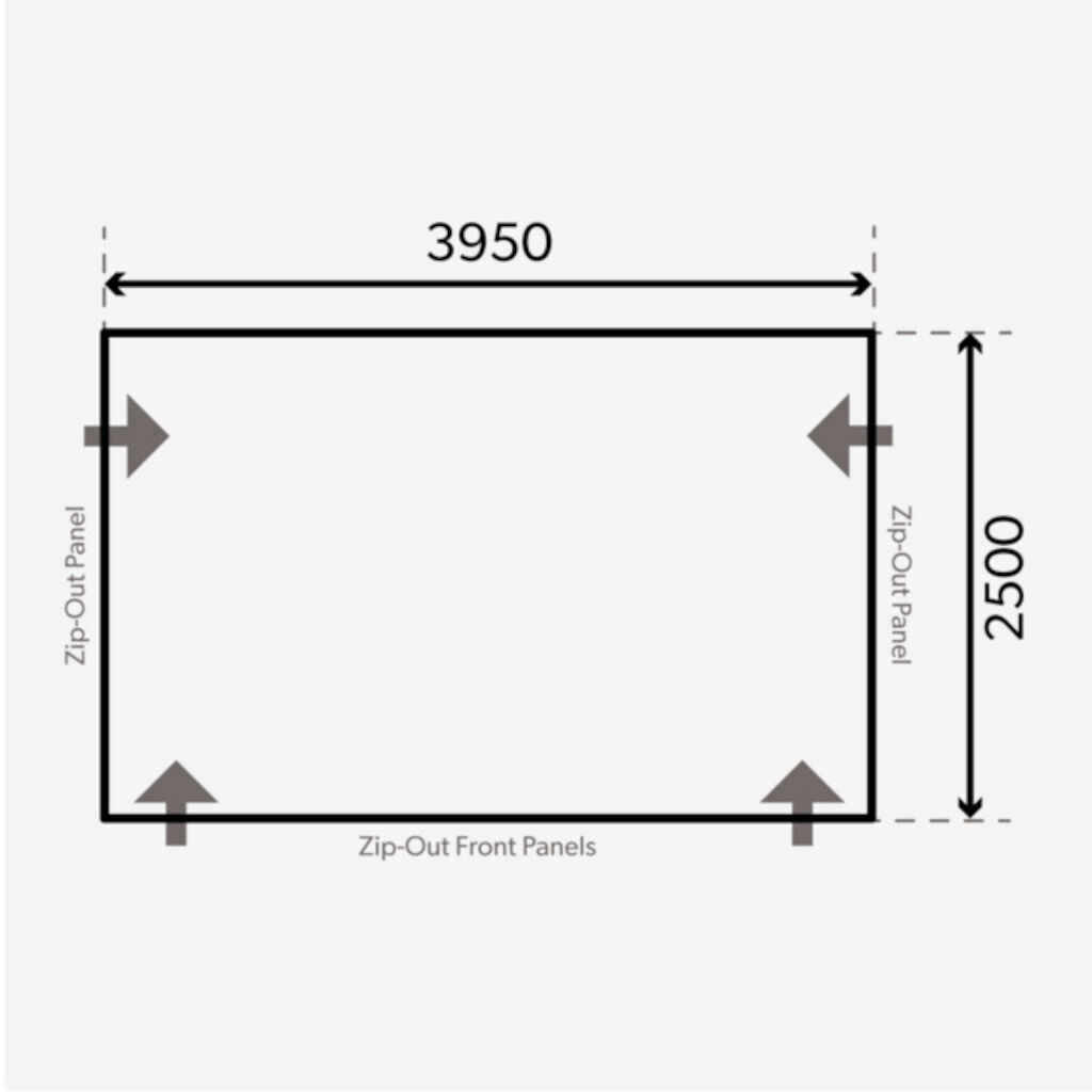 - The front panels can be rolled to the side, and the side panels can be opened up – perfect on warm days