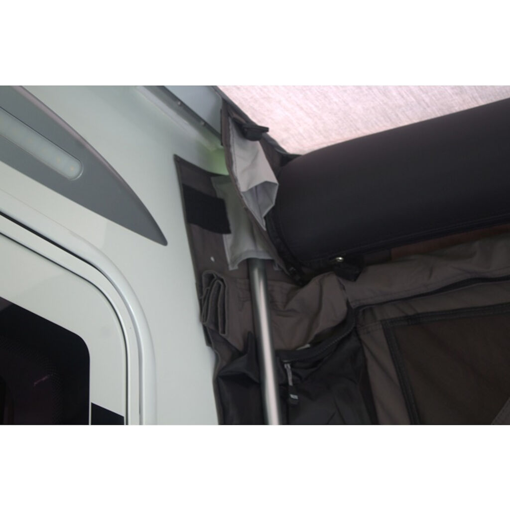Caravan: The caravan needs a straight part of the molding which is 330 cm. If one side of the tent ends up over a window or a hatch, it can be sealed with the help of bars (not included).