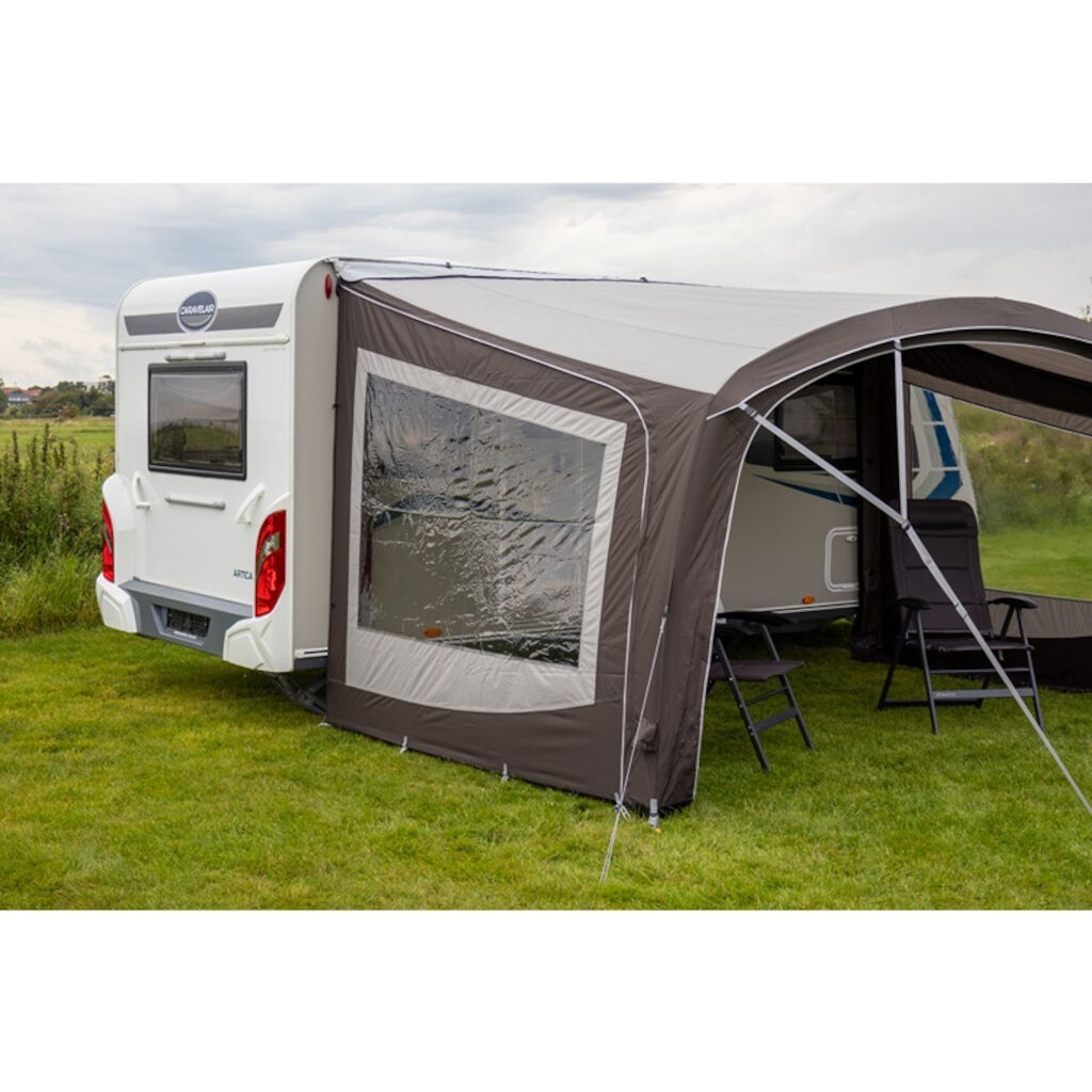 Set with two side walls for the sunroof/awning Telta Sky Link with large clear windows. Gives you also good protection against wind.