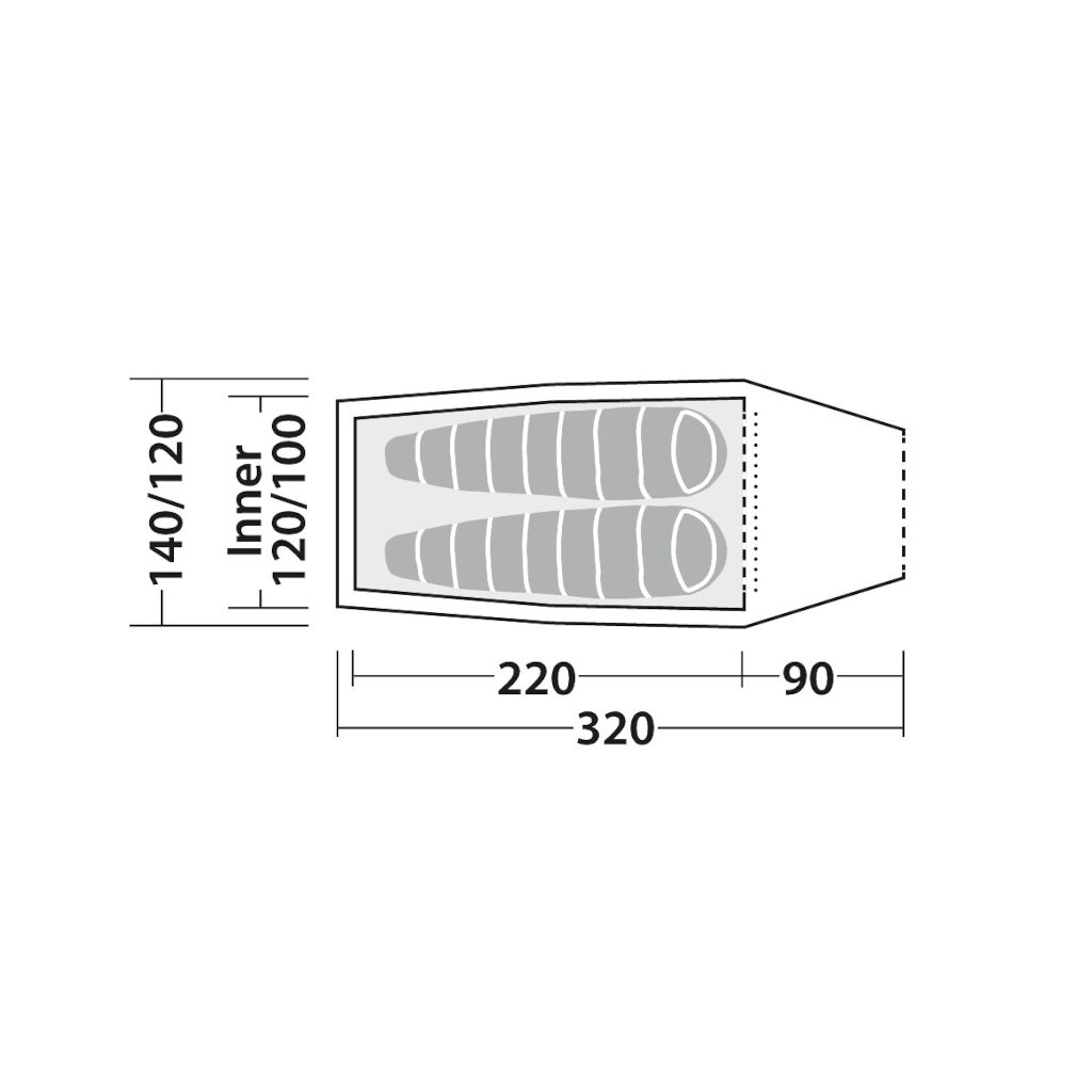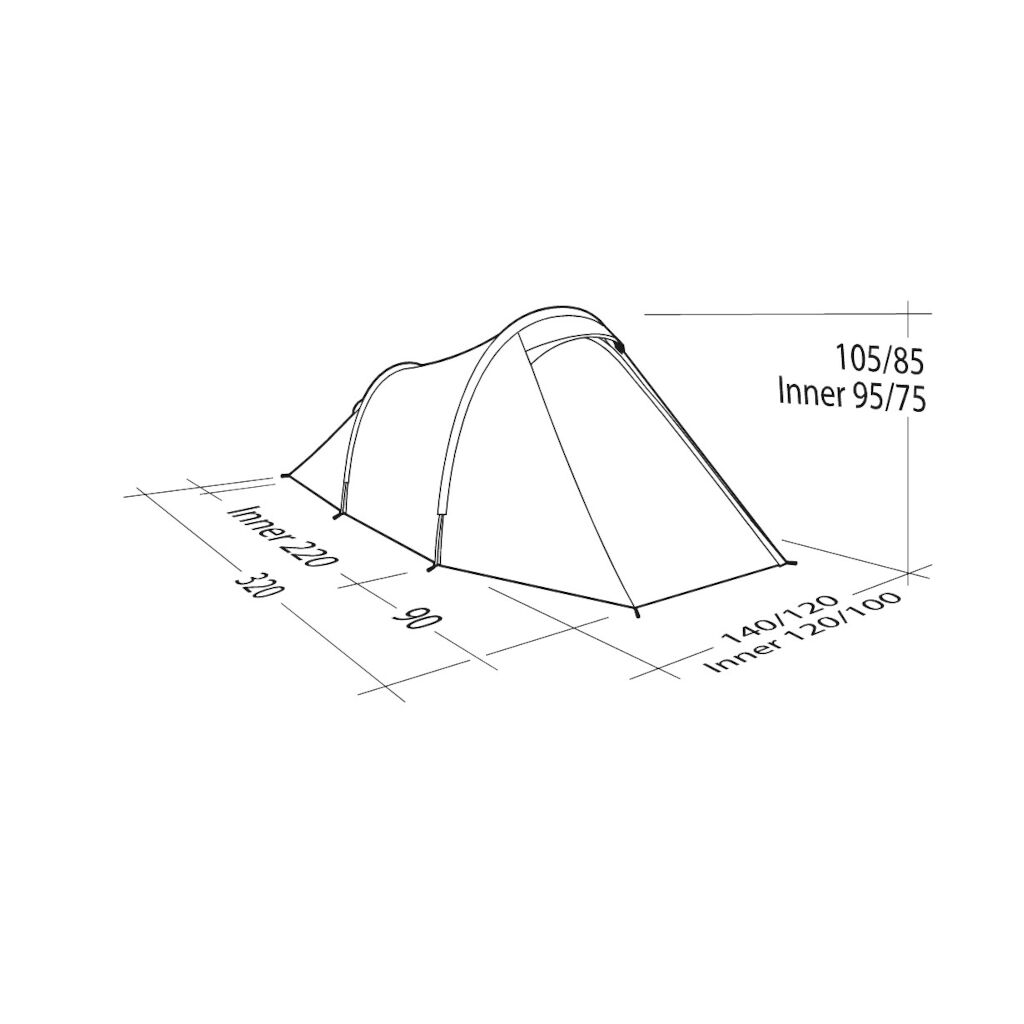 Stable and very light 2-person tunnel tent with good canvas, aluminium poles and a porch area for the packing. Perfect for those who are new to tents or want a good tent at a really good price. The low weight and pack size make a tent very easy to carry.