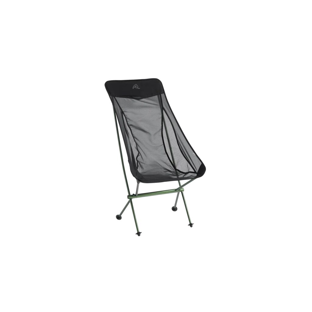 Lightweight and pack-friendly camping chair with an aluminium frame and mesh fabric panels that provide excellent breathability. High backrest and wide feet for stable use on soft ground.