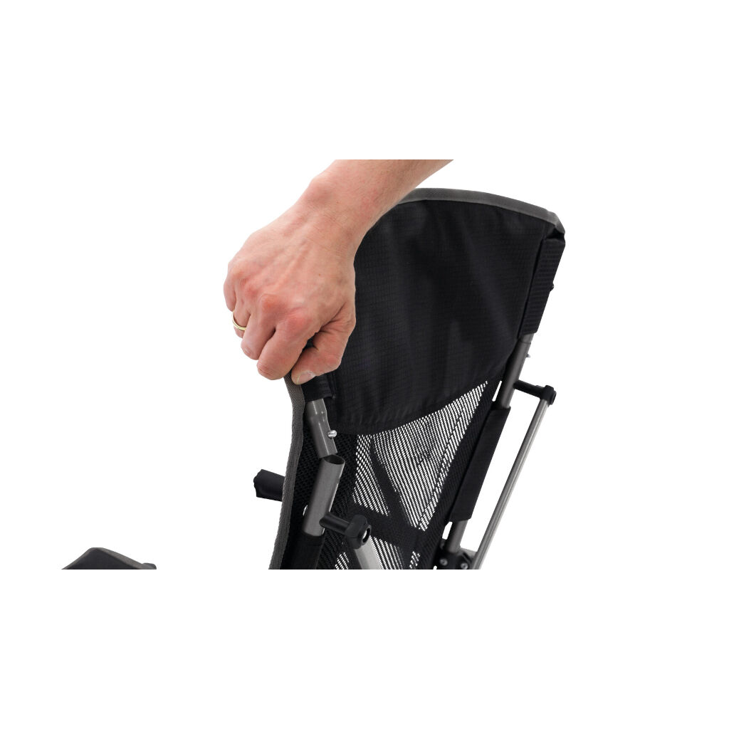 All-round chair with a good pack size that fits just as well with the dining table as being used as a free-standing chair. The combination of seat height, good backrest and pack friendliness make it a very attractive chair for campers. Strong steel frame and armrests provide good stability.