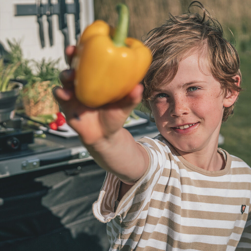 One of the most important conveniences in tent life is to have a smooth cooking and storage of kitchen equipment. With a large windbreak with space for spices, food, and equipment, and a bench with an extendable washing bowl, Magante provides everything you need for easy cooking at the campsite. Two large cabinets with doors that have magnetic fastenings provide space for food and pots, as well as for the gas bottle.