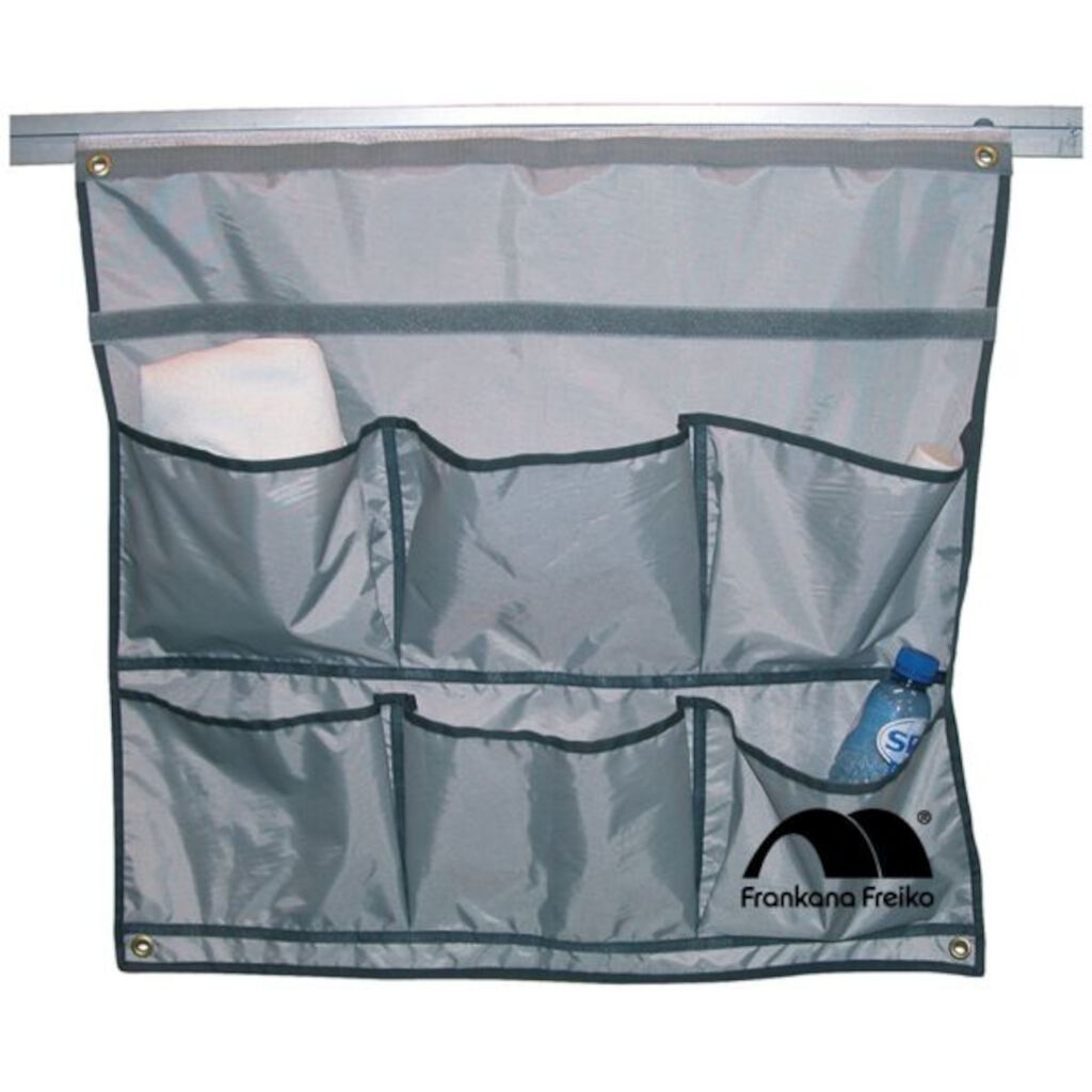 Practical wall storage with integrated beading strip that easily attaches to the caravan’s awning rail. With 6 pockets, you get a great opportunity to organize your belongings during your camping holiday.