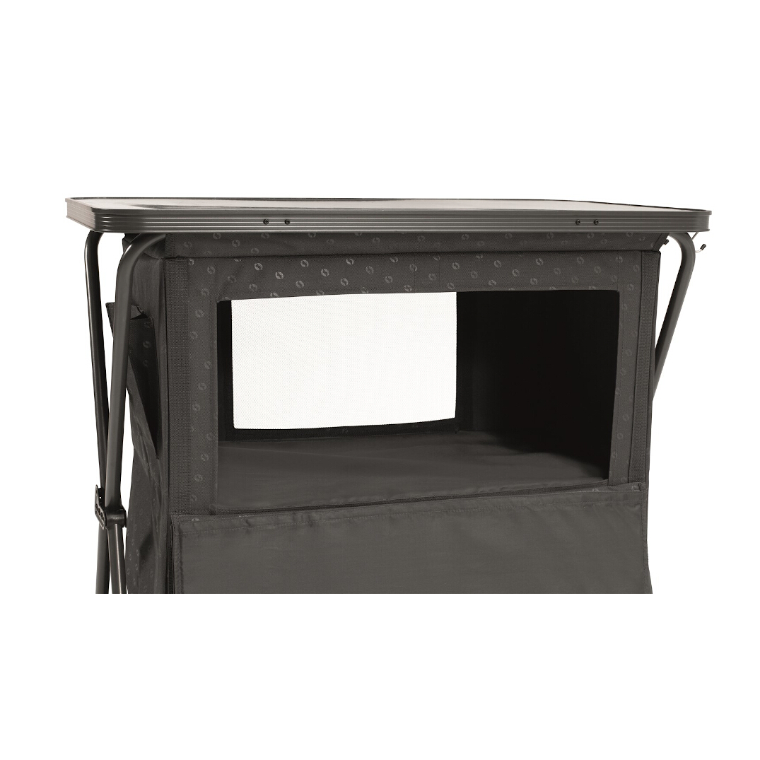 Organize clothes and equipment in this wide and pack-friendly cabinet from Outwell. The cabinet also has a storage pocket and hooks on the sides. Everything is folded and packed in the included bag for easy transport and storage.