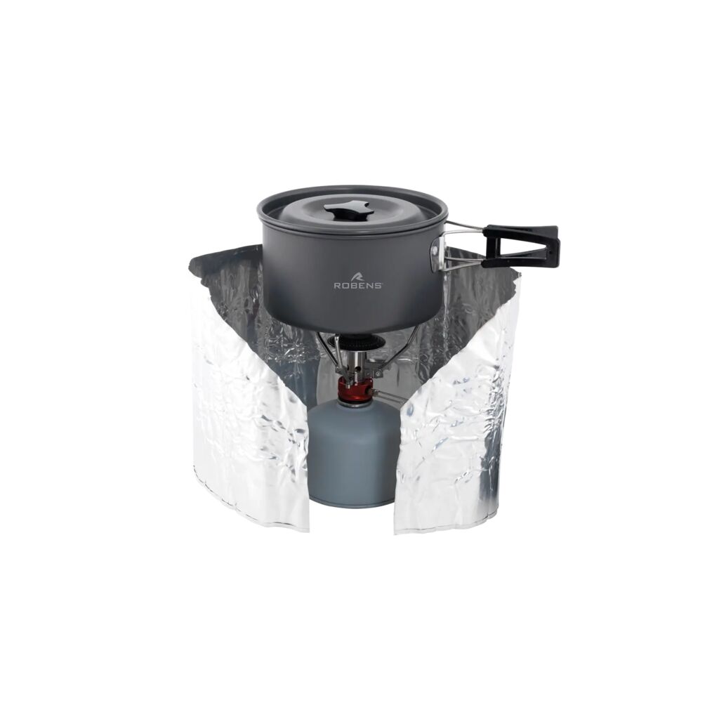 Windscreen for gas burners, made from durable foil that easily wraps around the burner. The foil is easy to use even when wearing gloves.