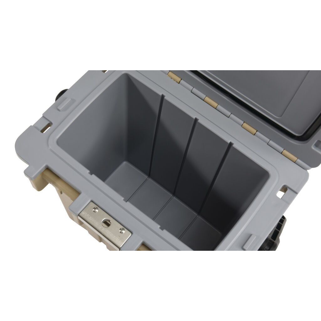Passive cooling box which, thanks to a highly efficient injection molding design with 5 cm thick insulation, keeps the goods chilled or even frozen for up to five days. Just load with ice packs or ice to keep items cold. Perfect for shorter trips. Drain valve at the bottom makes it easy to empty and clean.