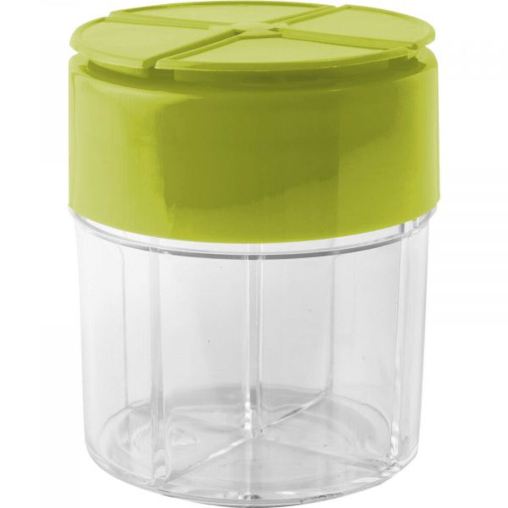 Practical storage for spices while camping. Made of high-quality plastic with four separate compartments, each holding 50 ml. The lid seals tightly, preventing air or spices from leaking in or out.