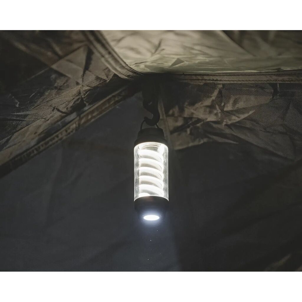 The Wintergreen Compact lantern is ultra-light and can be used either as a flashlight or as a lantern. The lantern comes with a tripod and hook and can be used standing or hanging. It features seven different light modes and is charged via USB-C.