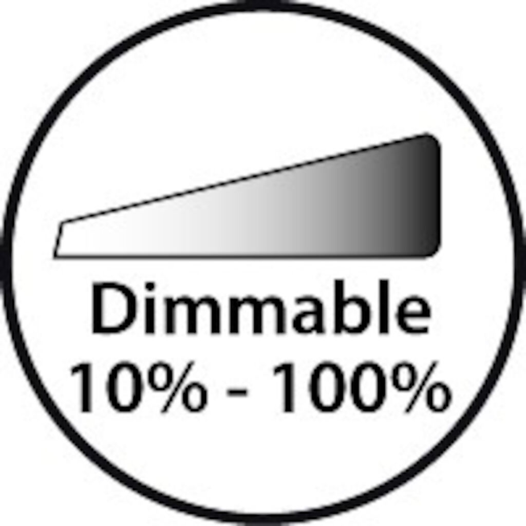 - Dimmable 10–100% (Hold button to adjust brightness)