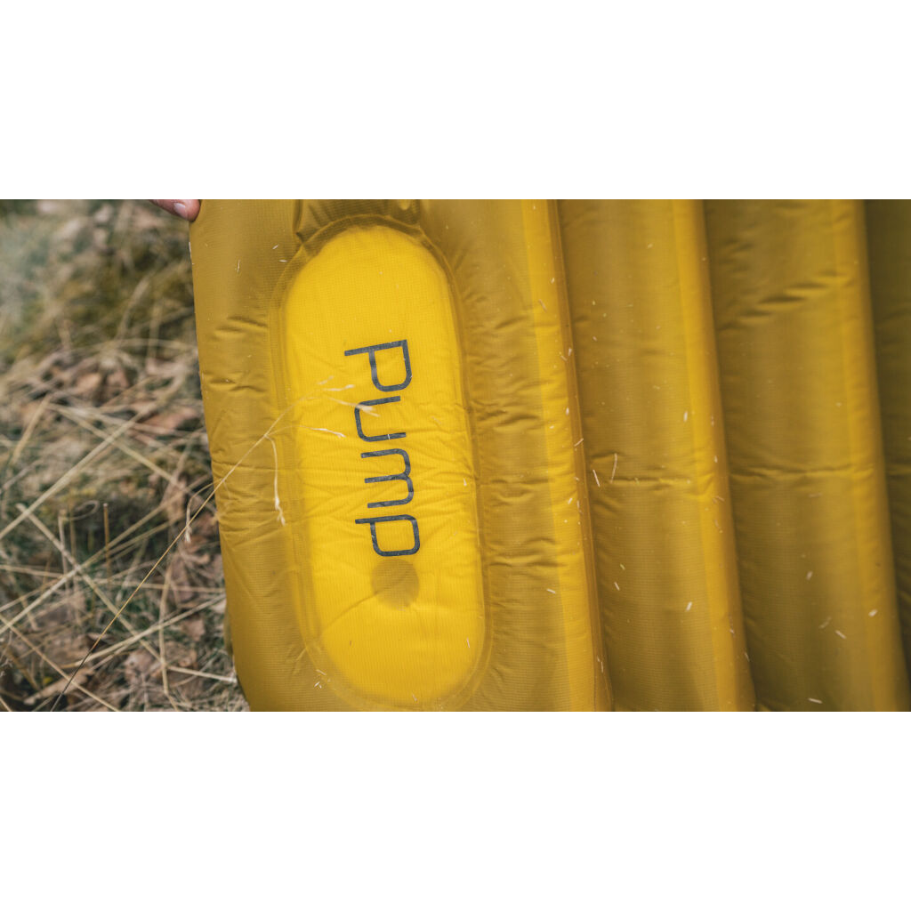 Inflatable sleeping pad with built-in pump and an insulating top side that makes the sleeping pad work well from spring to autumn. Durable ripstop nylon and a robust valve ensure a long lifespan for the mattress.