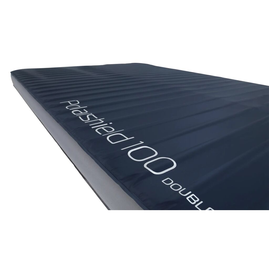 An extra thick and long double foam-filled sleeping mat from Robens, featuring small vertical cut-outs in the foam that reduce pack size with minimal impact on insulation and comfort. The mat is rectangular with straight sides and, thanks to the foam filling, remains comfortable for two people to sleep on, as it distributes weight and provides mattress-like properties. The sleeping mat is suitable for activities that require durability, reliable insulation, and a compact pack size. The insulation makes it suitable for all seasons. Carry bag included.