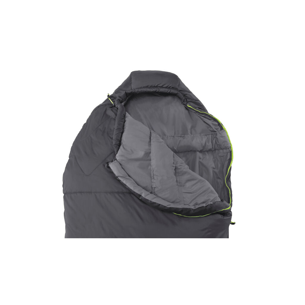 Warm and spacious camping sleeping bag with Isofill premium insulation that provides good insulation and small pack size of only 17 x 28 cm. The soft inside of the sleeping bag combined with the airy filling gives a very down-like comfort in the sleeping bag. The sleeping bag has extra space at the foot end, is extra wide and mummy-shaped, which optimizes the ratio between weight and warmth. The zipper is protected with an overfolded edge with padding that prevents heat leakage.