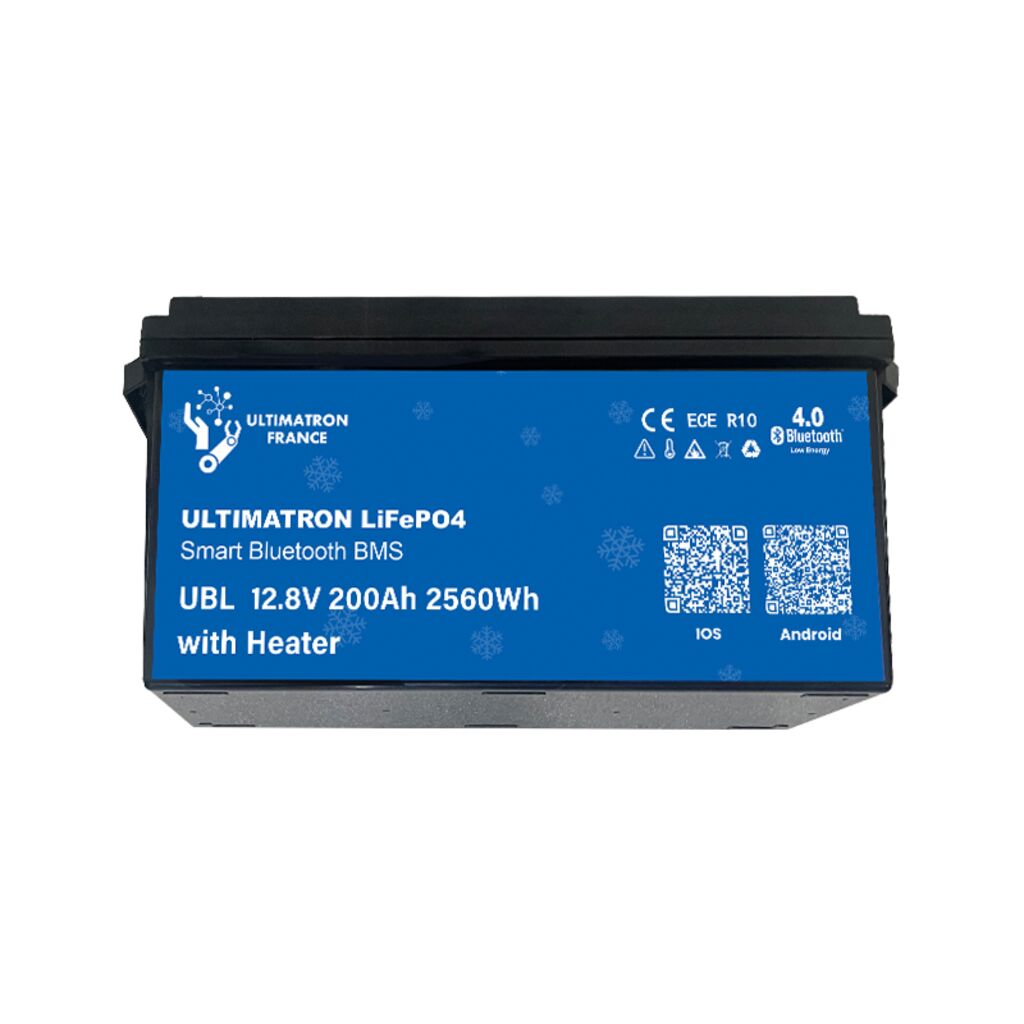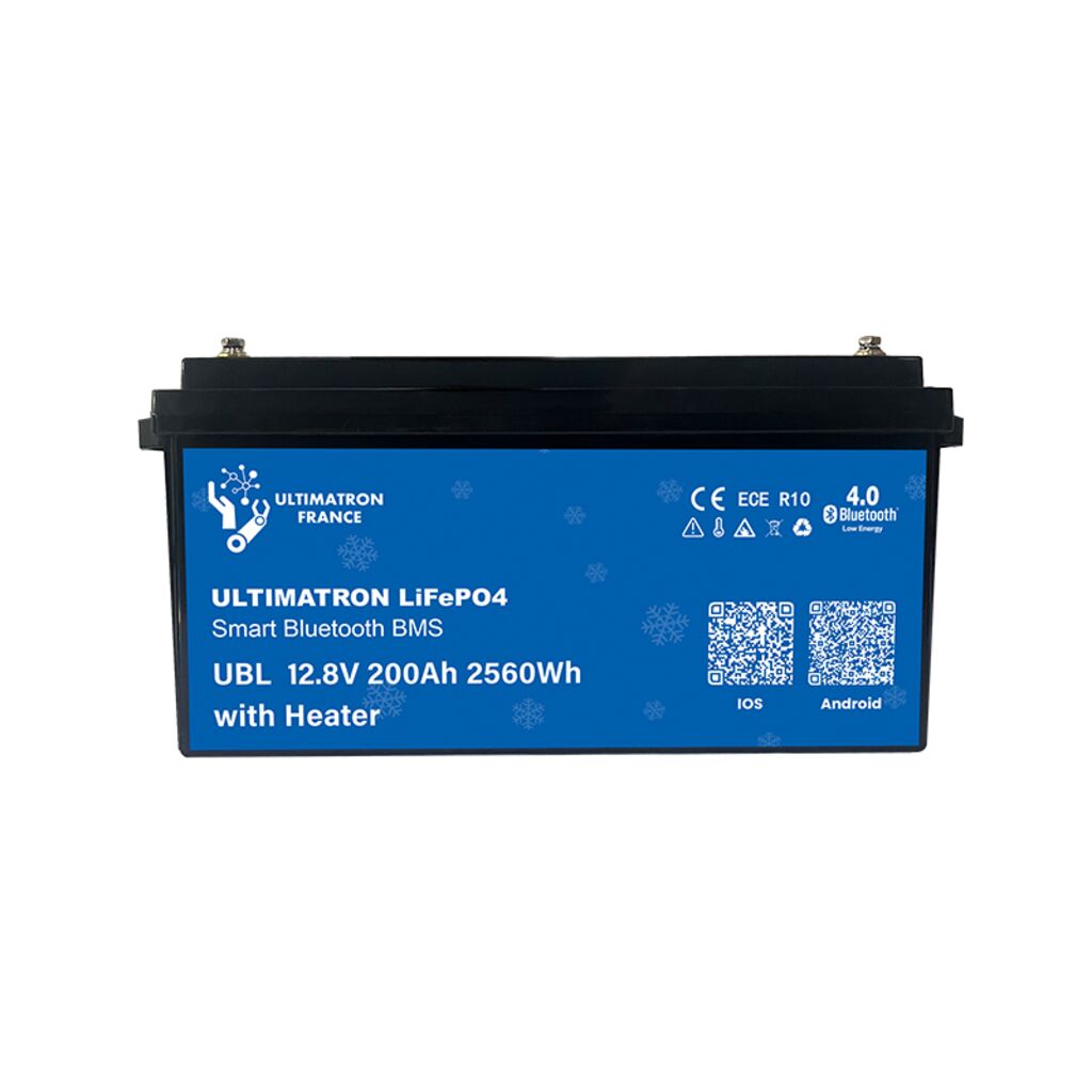 Lithium battery with a capacity of 200Ah for caravan, motorhome or boat with a built-in heating system, allowing it to be charged even during winter. With a continuous discharge capacity of 200A, it is also suitable for inverters up to 2000W. Ultimatron Heat 200Ah features a BMS (battery management system) that protects the battery against incorrect charging, high temperatures and overload. Thanks to its BMS, you can replace your lead-acid battery (not starter batteries) directly without making any adjustments to the electrical system. The battery can also be connected in parallel with up to 4 batteries for increased capacity.