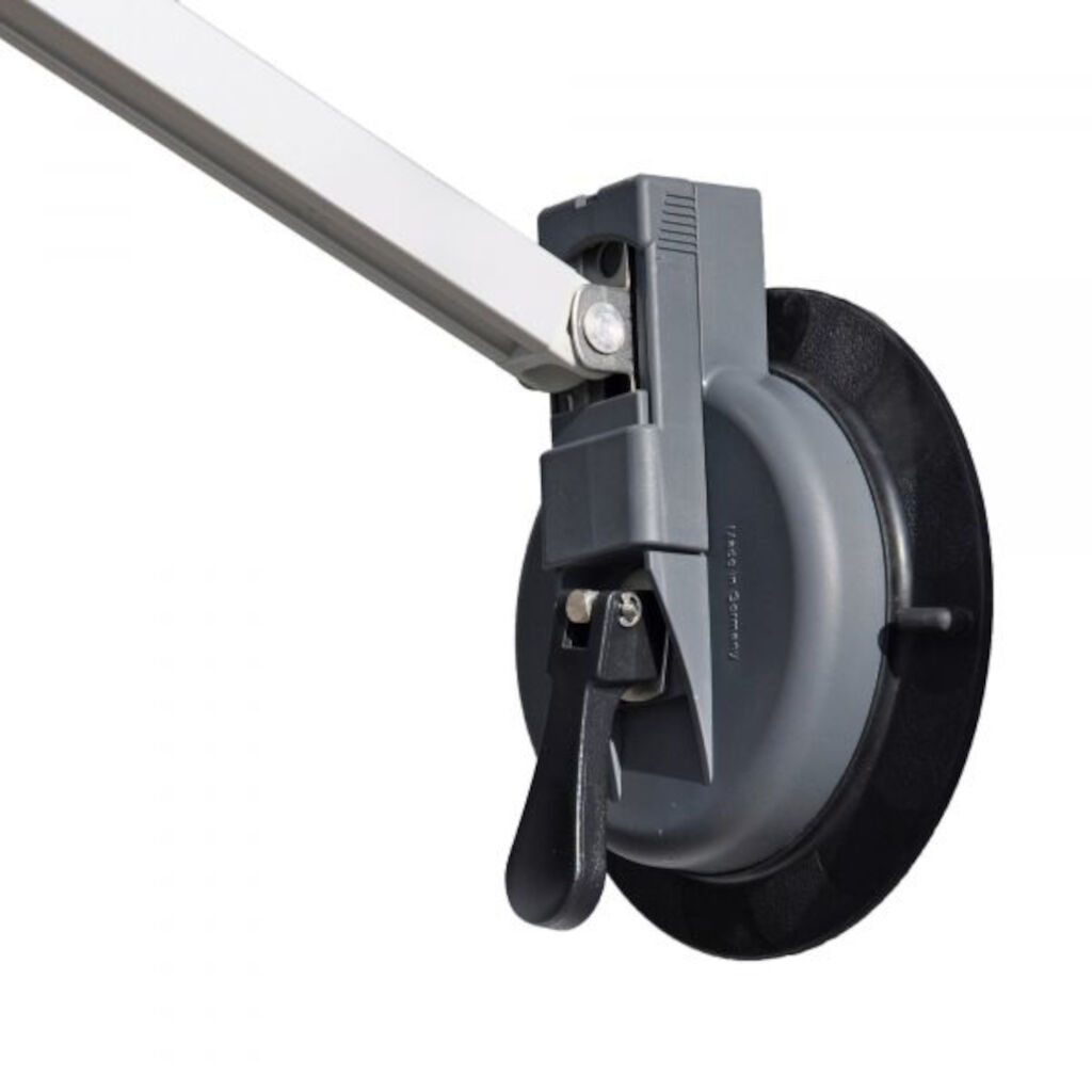 Suction cup bracket for awnings and wind protection. This means that you do not have to screw the bracket for the arm into the caravan.