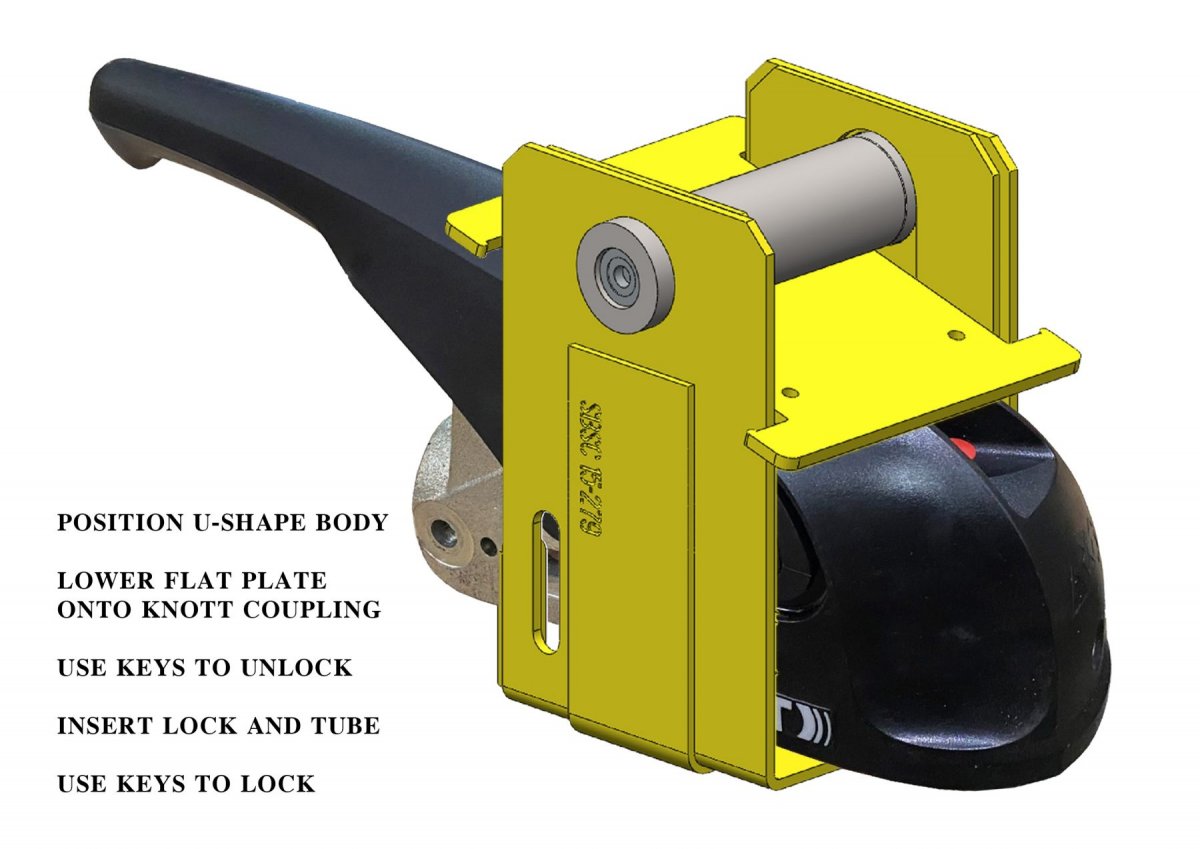 Hitch lock for Knott KS25, KS30, and KS35 that is approved by Sold Secure Gold and SCM MPO3. Super Heavy Duty steel combined with the strongest lock ever used in similar products. Provides both excellent protection and is a strong visual theft deterrent.
