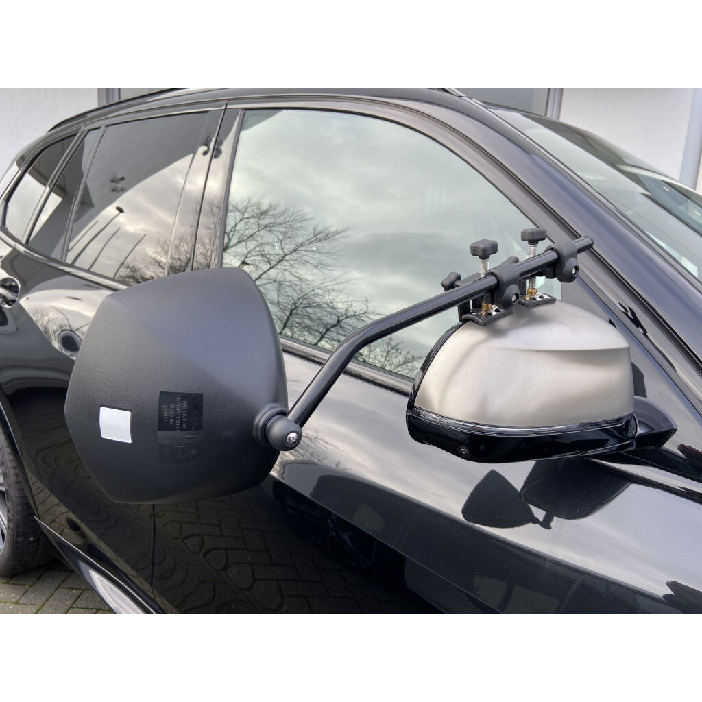 Aerodynamic rearview mirror from Milenco that is attached to the upper or lower edge of the original rearview mirror with two clamp brackets. The long arm makes it perfect for the wider caravans. The Platinum model is specially adapted to also fit more tapered rear-view mirrors and those with a thicker frame (max. 25 mm) but works on all types of side mirrors.