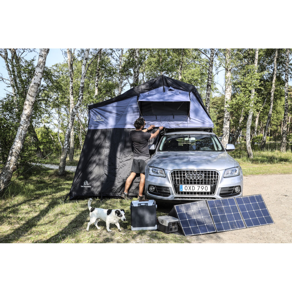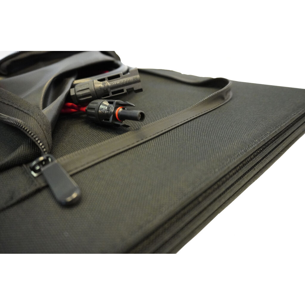 Durable large solar panel that provides efficient charging of your Power Station. Solar cell technology that provides good charge even in bad weather (12-25W when overcast). Rainproof bag with zipper that also works as a stand for both good protection and easy handling. Durable panel and waterproof contacts allow the panel to be left out in the rain.