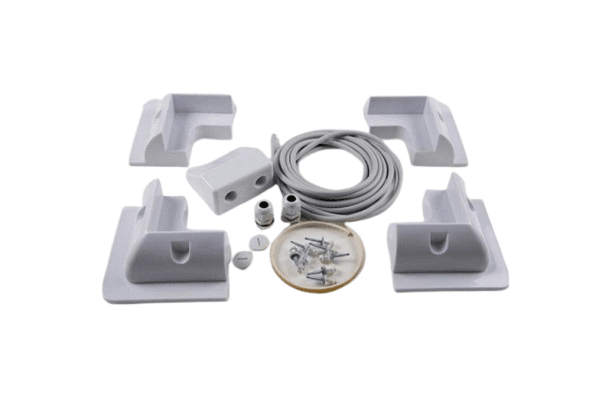 | Included in the pack | 4 x Plastic corners - white, Screw set including rubber strip, Waterproof cable entry, 5 meter cable, Installation instructions |