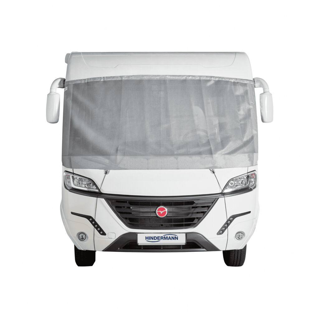 Universal sun protection from German Hindermann which is a fully integrated sunshade that is attached to the outside of the motorhome. The sunshade keeps out the sun's rays while still allowing visibility from inside the motorhome. Covers the windshield.