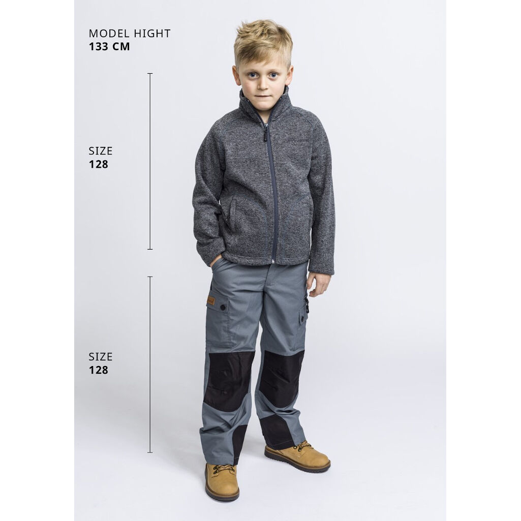 Lovely fleece jacket for play, hiking, camping and other outdoor activities in knitted mottled fabric with brushed and soft inside.
