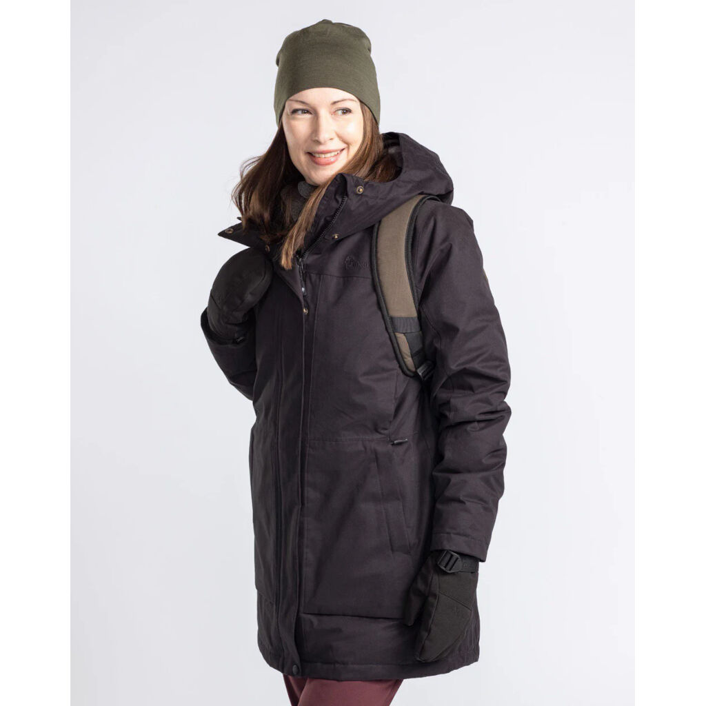Winter parka from Swedish Pinewood that is wind and water-resistant, with filling made of recycled polyester. The jacket has several practical pockets and a hood with a fleece-lined collar.