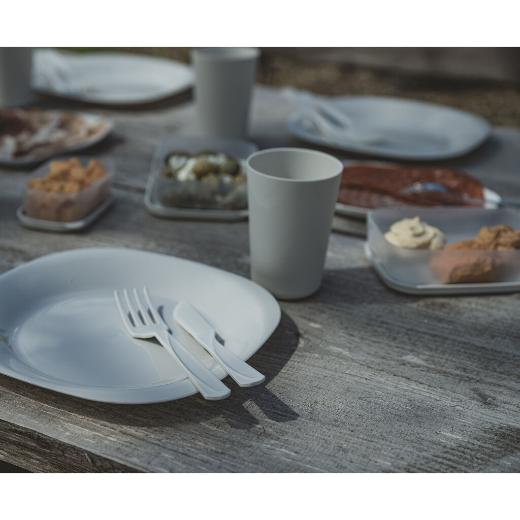 Complete dinnerware set for 4 people with 24 pieces and storage boxes. The Easy Camp Picnic Box L comes in a practical storage box with a lid and handle, which holds the entire set. Perfect for camping trips, the beach, or picnics.