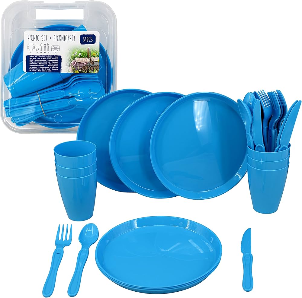 READ MOREPractical tableware set for 6 people with 31 pieces, including cutlery in a storage box. The picnic box is delivered in a practical container with a lid and handle that holds the entire set. Perfect for camping trips, the beach, or picnics.