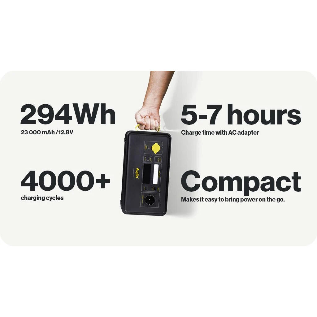 - 300W continuous power (500W spikes/start power) and a capacity of 294 Wh