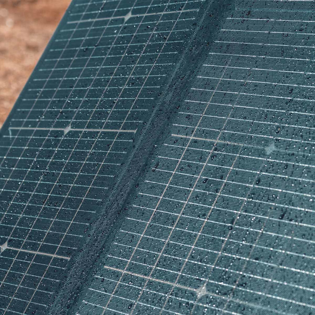 - Monocrystalline silicon cells provide better charging in bad weather (approx. 15-30W in cloudy weather)