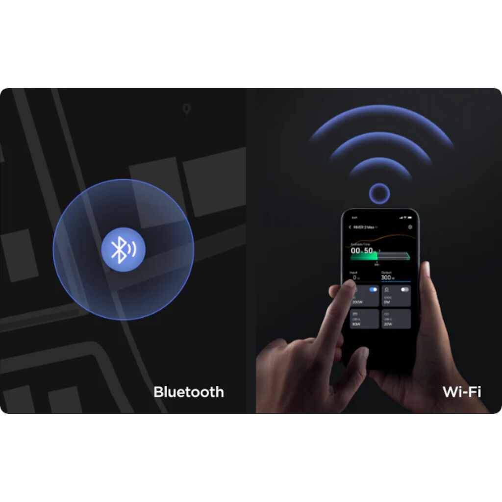 By connecting your EcoFlow River 2 Max to the phone, you can monitor your Power Station and see how much capacity you have left, how much your solar panel is charging or how much the equipment you use is consuming.