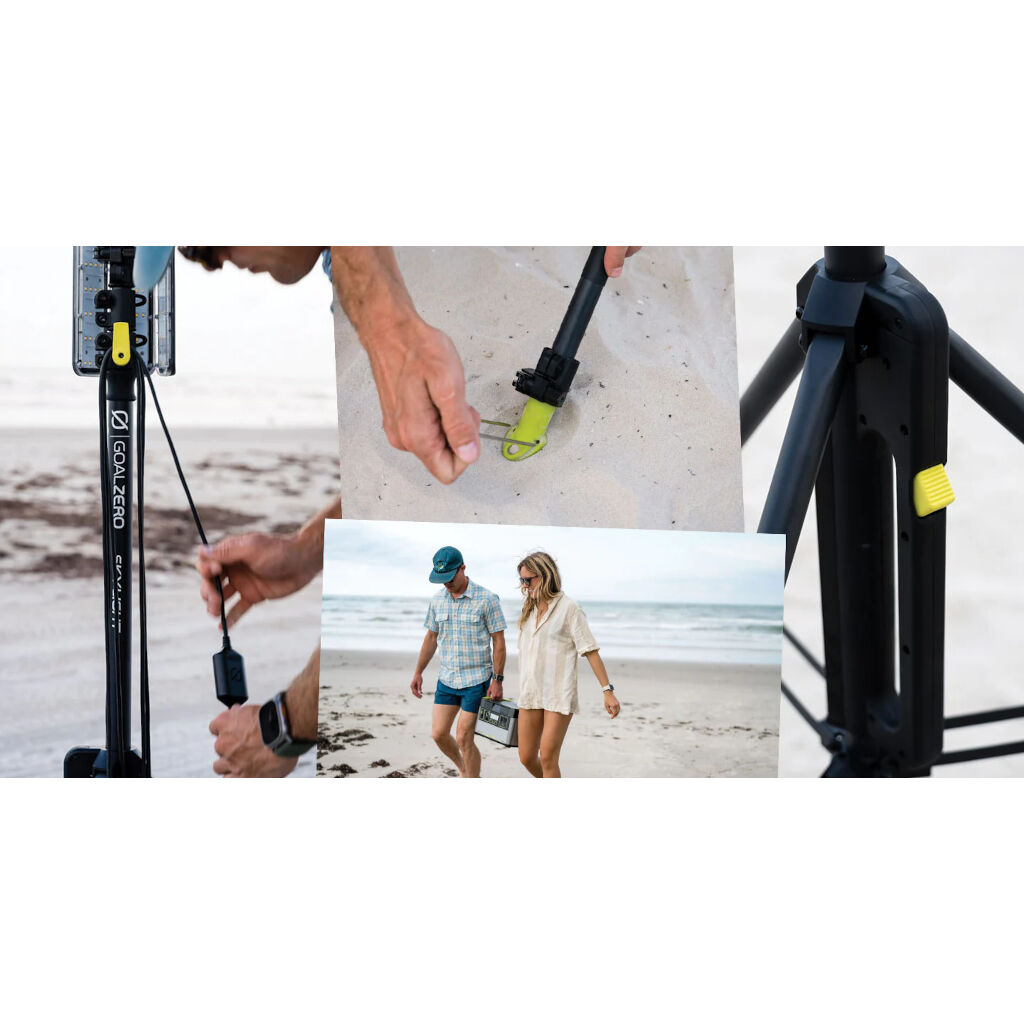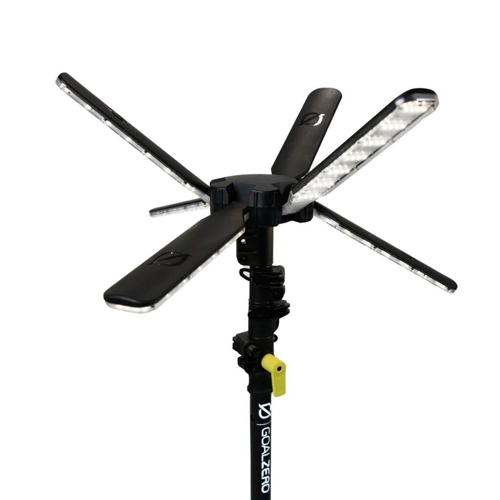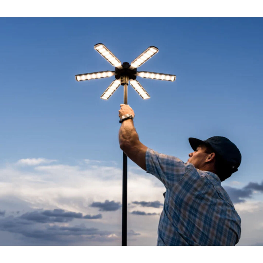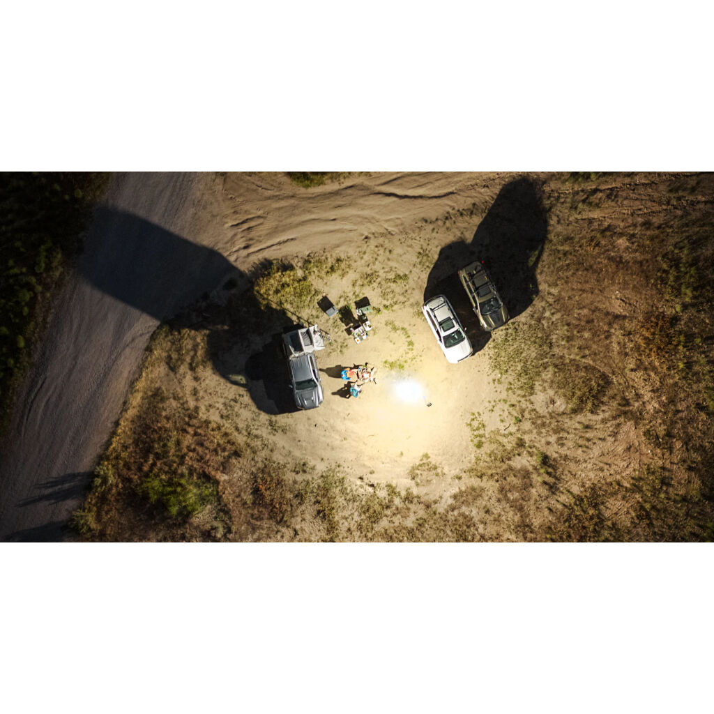 Smart portable outdoor lighting that is perfect for the camping trip or base camp. Thanks to a lightweight telescopic stand with a maximum height of 3.6 meters and adjustable lamps, it can illuminate up to 90 meters, allowing you to have excellent outdoor lighting even when it's really dark. The capacity of the lamps is 6,000 lumens, providing you with significantly better visibility than a regular camping lamp. It has a built-in battery but works best with a Power Station or with a 12V source to plug it into.