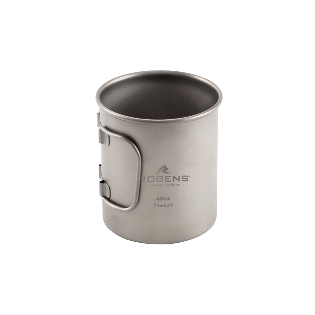 Durable titanium mug with foldable handles and low weight. Perfect for both outdoor life and camping.