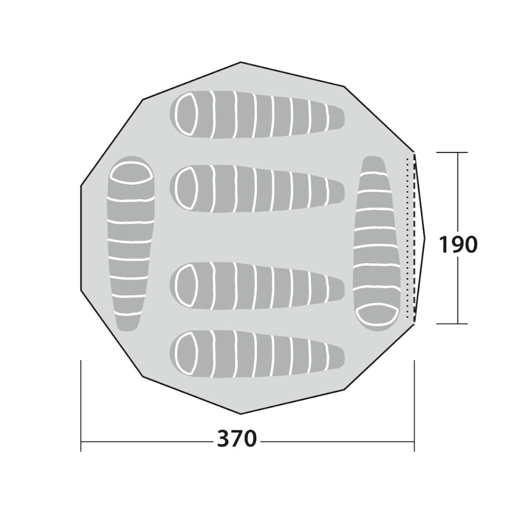 - Can be supplemented with a stove, inner tent for 4 people and a tent mat