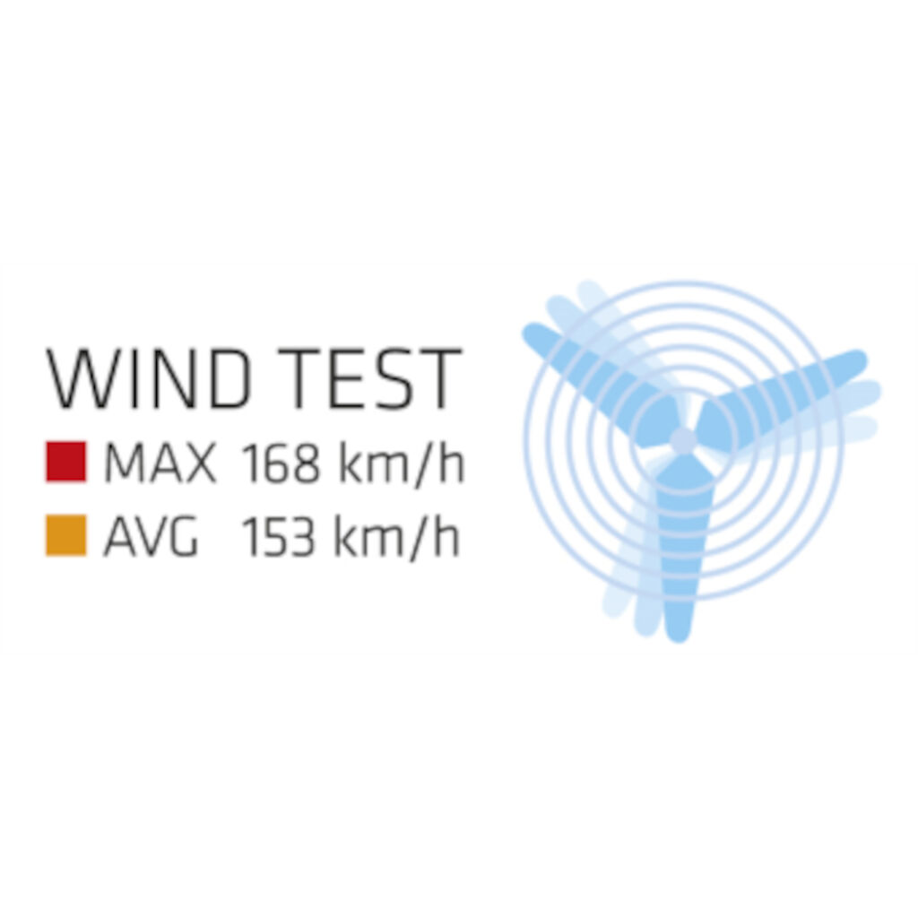 - Stable, tested for winds of up to 168 km / h