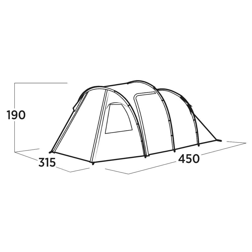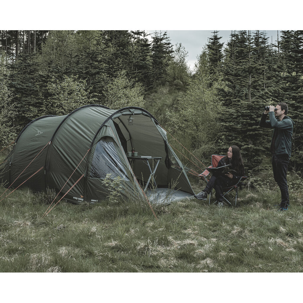 Easy Camp Hidra 5 is an affordable 5-person tunnel tent with a large porch area and a removable floor. It features windows on both sides with roll-up curtains, adjustable ventilation, and a dark SleepTight inner tent for a better night's sleep. An excellent choice for families and groups looking for a spacious and comfortable tent at a great price.