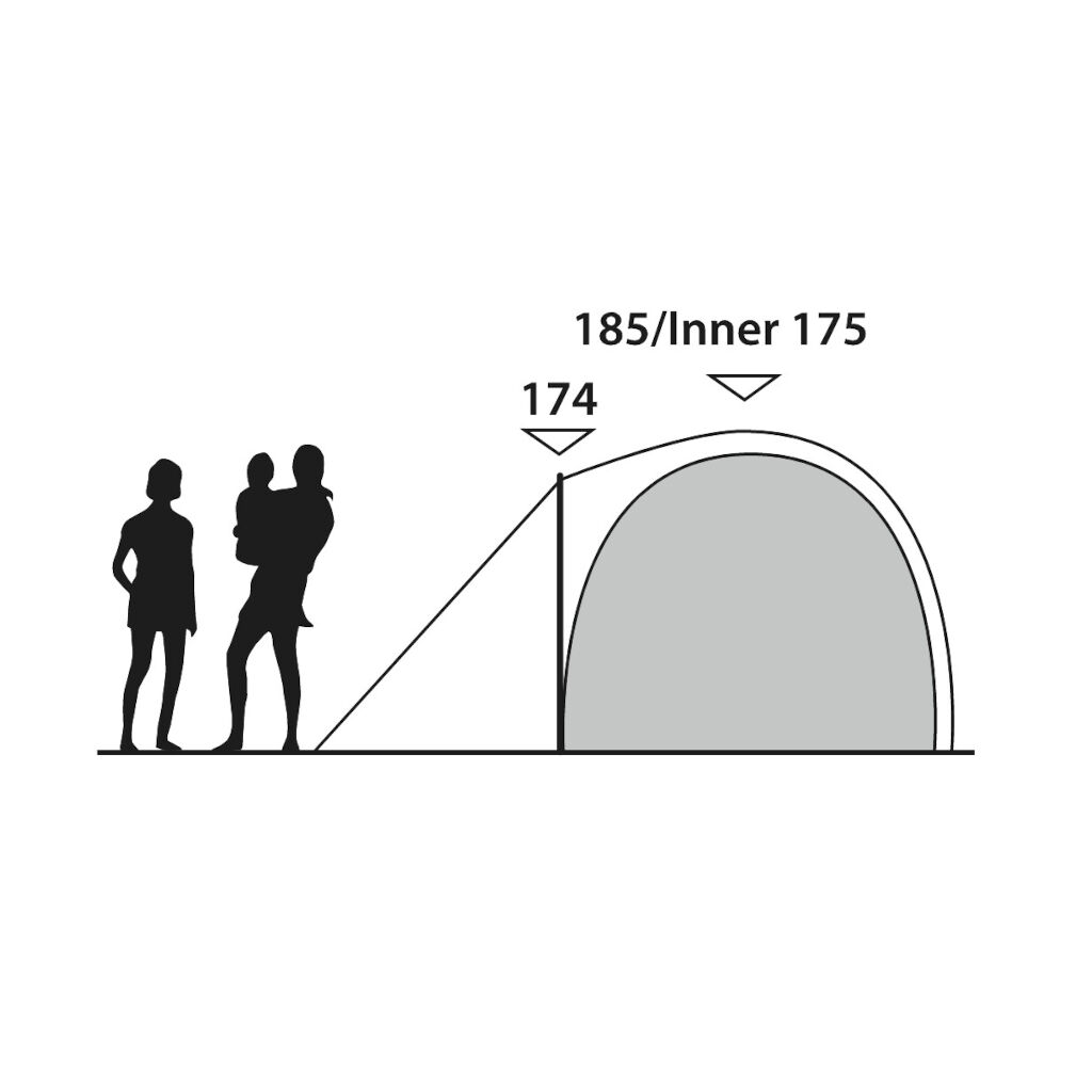 With a ceiling height of 175 cm, the sleeping cabin is easy to enter and exit, and you can comfortably change clothes while standing. The sleeping cabin is fully sealed with a durable sewn-in floor and insect netting in the ventilation. Darker fabric in the sides and roof of the sleeping cabin reduces light penetration.