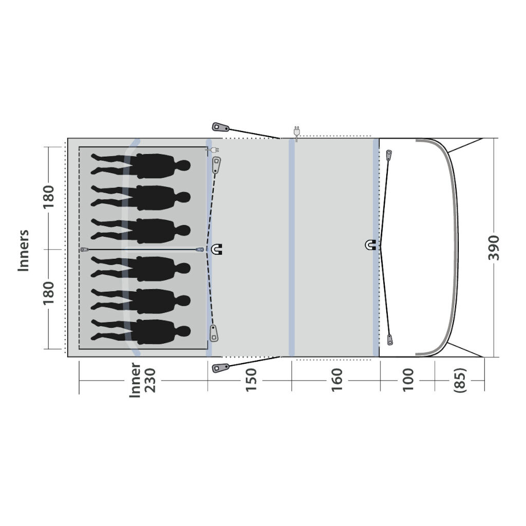 | Inner tent | Dark inners: Dark roof panel and sides reduce light penetration to improve sleep quality, 65% polyester / 35% cotton |