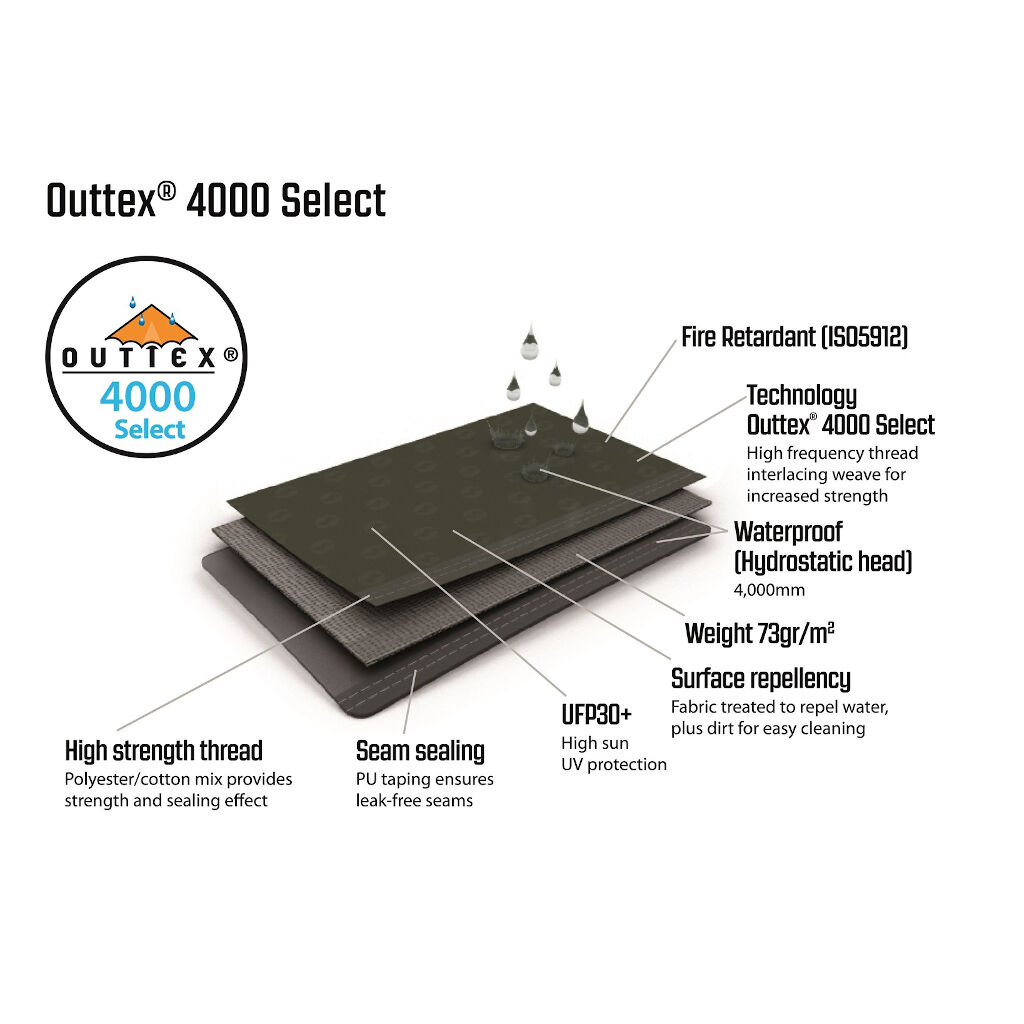 | Flysheet | Outtex® 4000 Select, 100% polyester |
