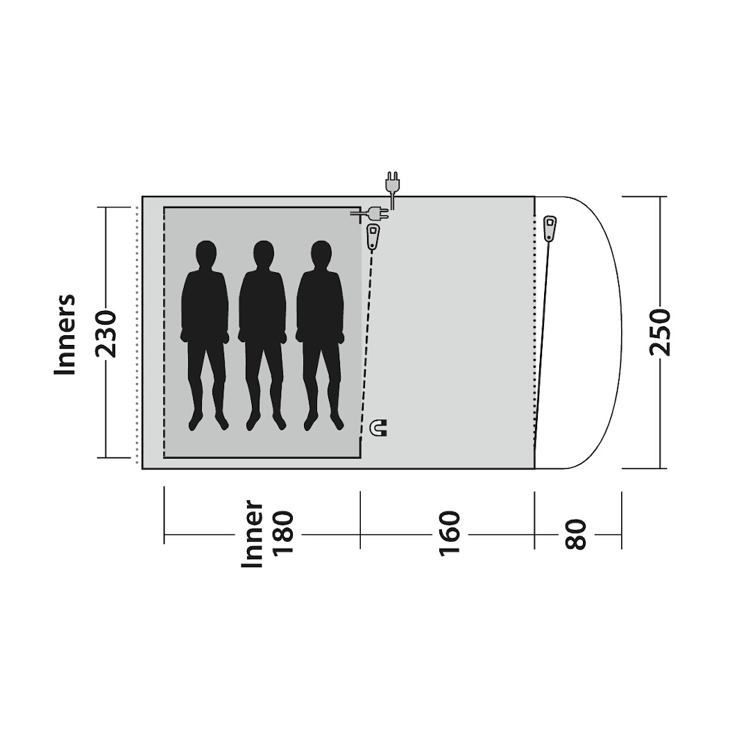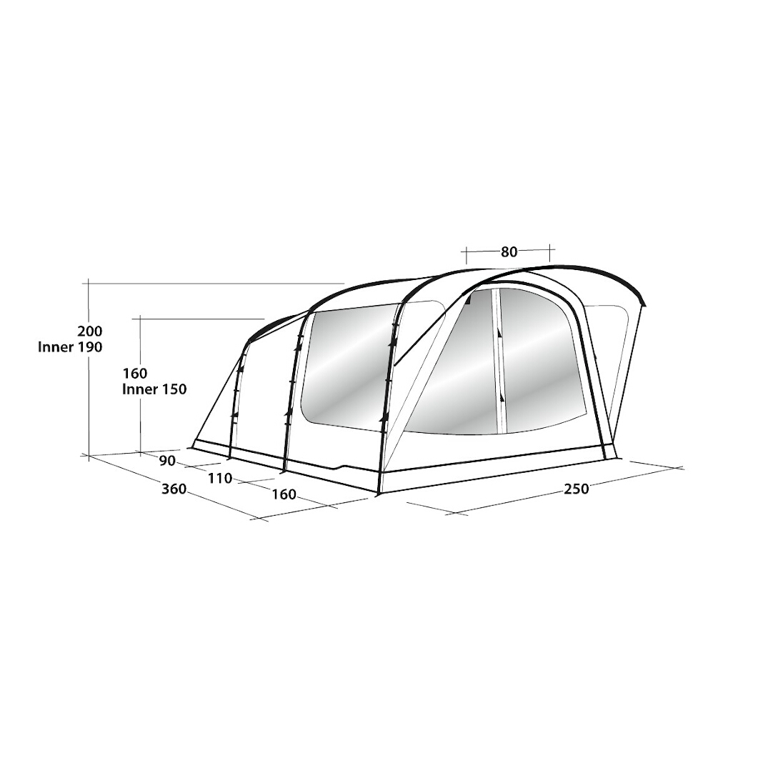 | Ceiling height | 200 cm in tent and 190 cm in the inner tent |