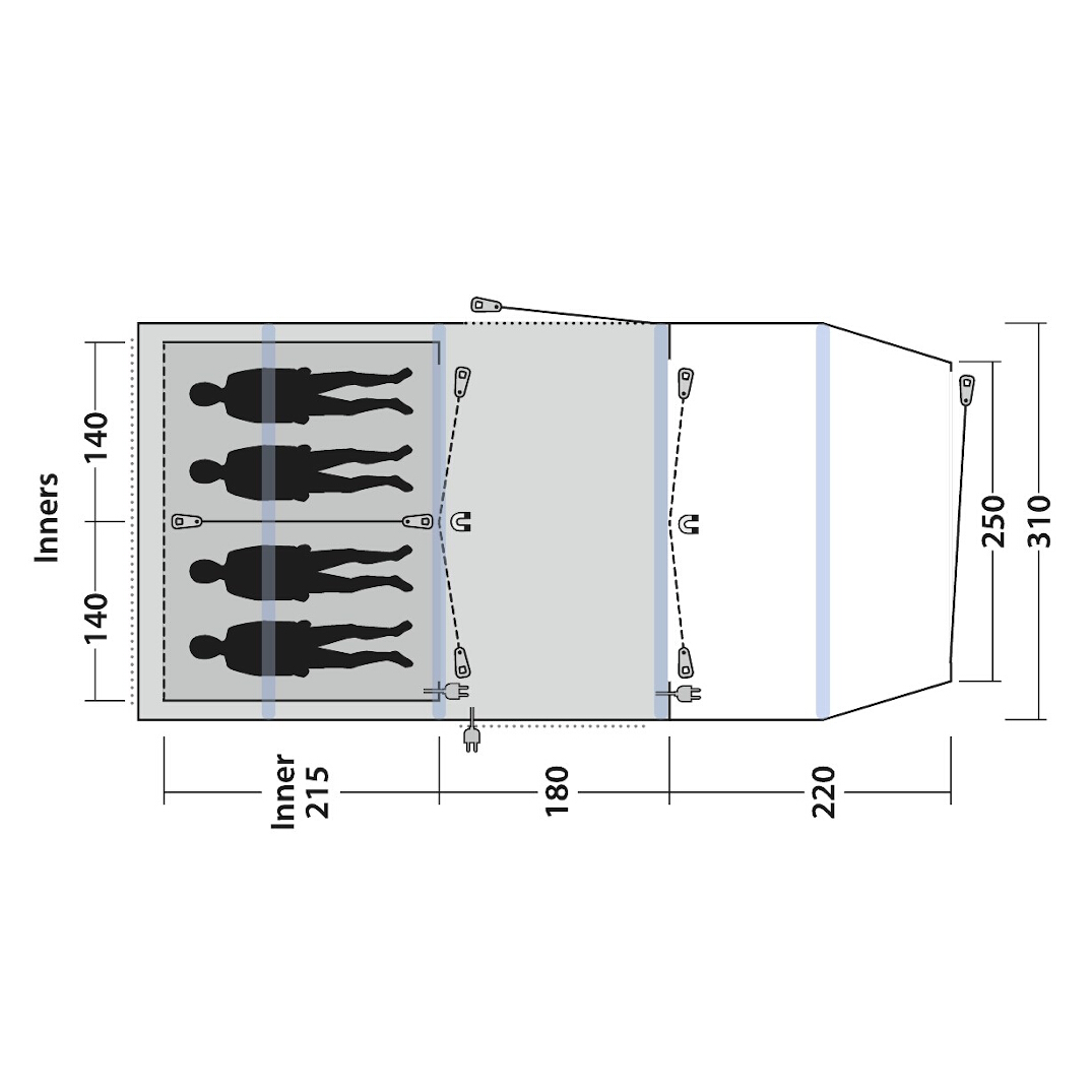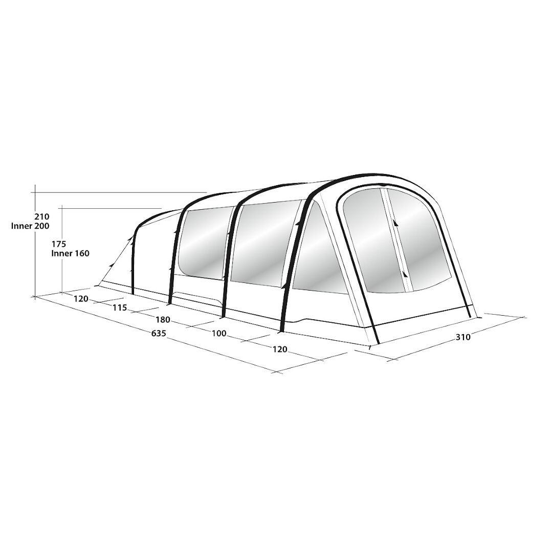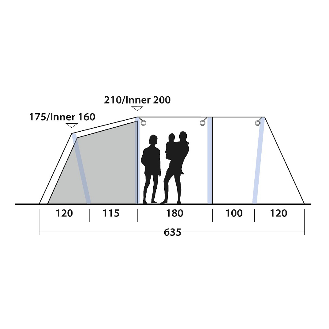 | Ceiling height | 210 cm, Inner tent 200 cm |