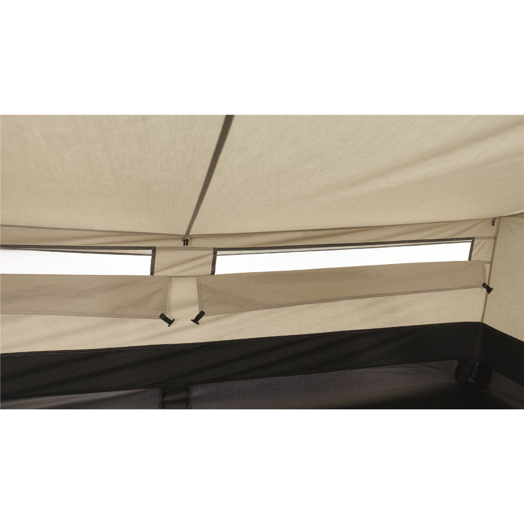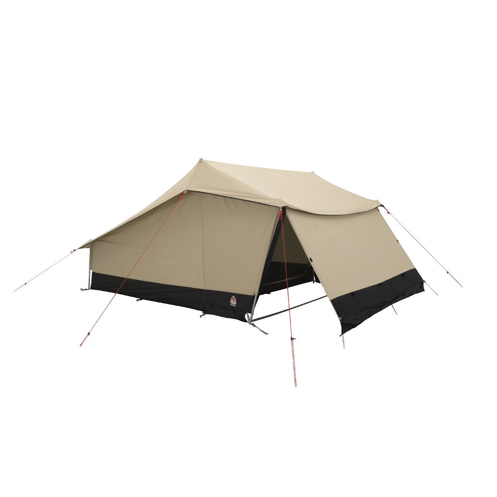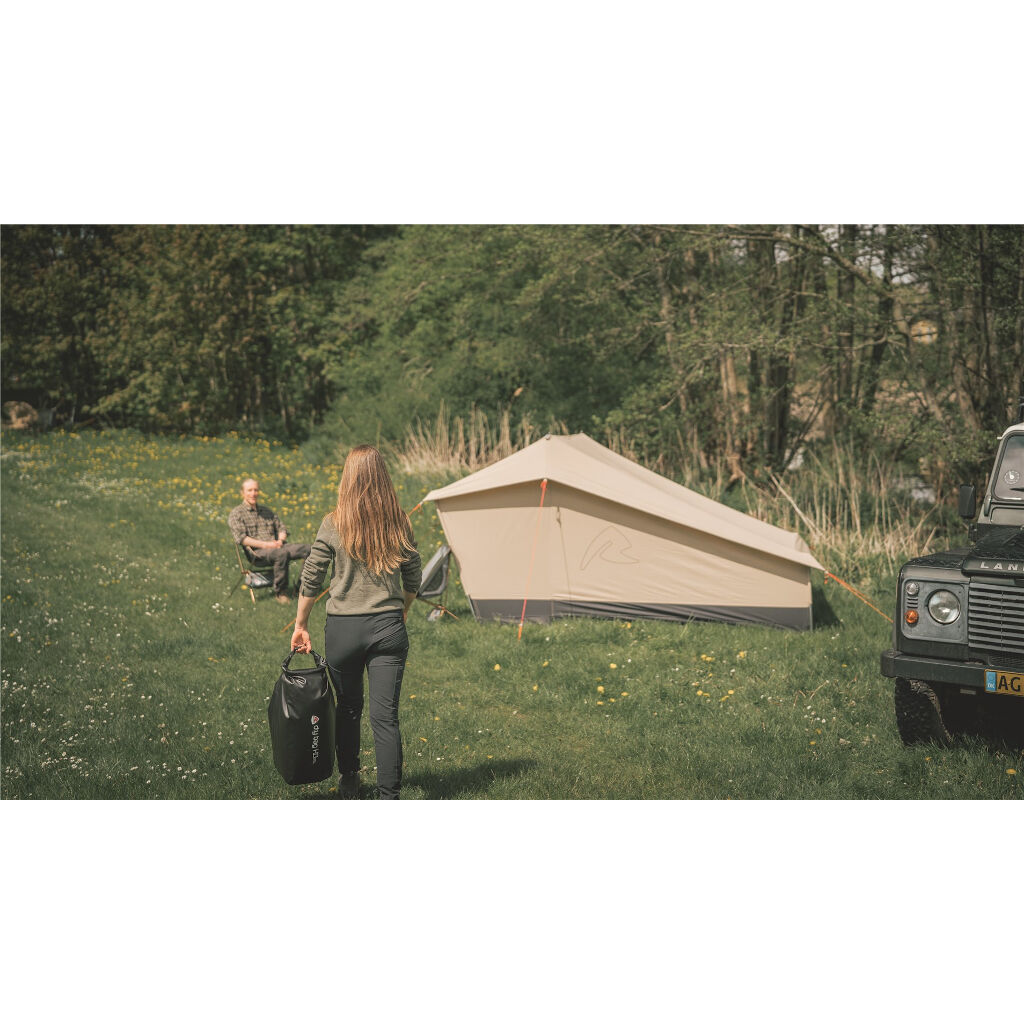 Robens Yukon Shelter provides accommodation inspired by the classic Scandinavian windbreak and works just as well as a tent as for a shelter during the excursion or fishing trip. The tent has a cotton-mixed flysheet that provides a really good climate in the tent, a sewn-in floor that keeps small insects out, net windows at the back and a large net door for the opening in the front. The front door can also be used to create a roof in front of the tent, mounted down to the ground so you get two smaller but protected entrances on the sides or during warmer nights rolled up to sleep with only the mesh door as protection against small insects.