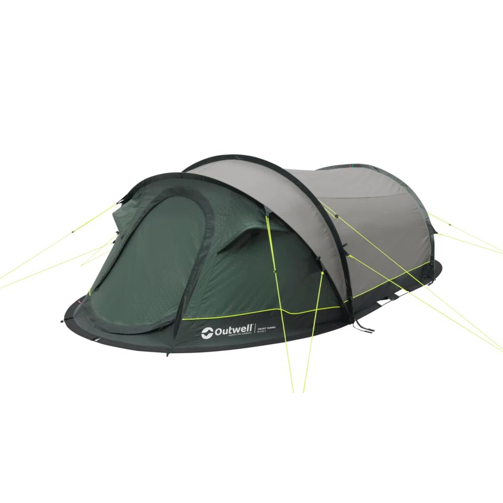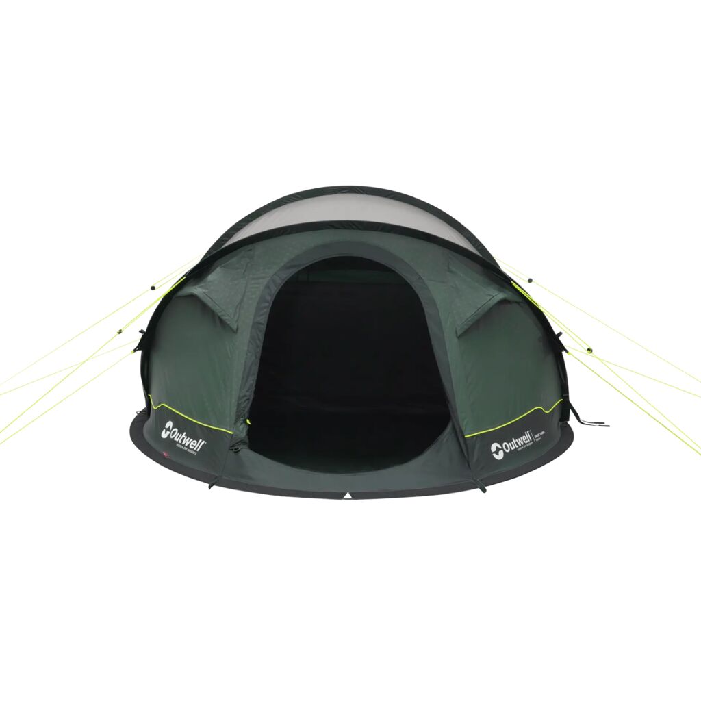 Outwell Wind Guard System, where the flysheet, poles and guylines are securely connected, delivers excellent performance in stronger winds. The fabric is flame retardant and fully waterproof with a hydrostatic head of 3000 mm and taped seams.