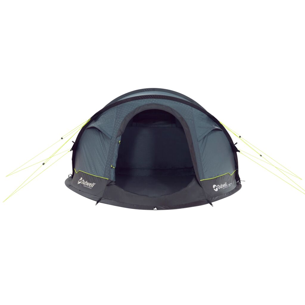 Outwell Wind Guard System, where the flysheet, poles and guylines are securely connected, delivers excellent performance in stronger winds. The fabric is flame retardant and fully waterproof with a hydrostatic head of 3000 mm and taped seams.