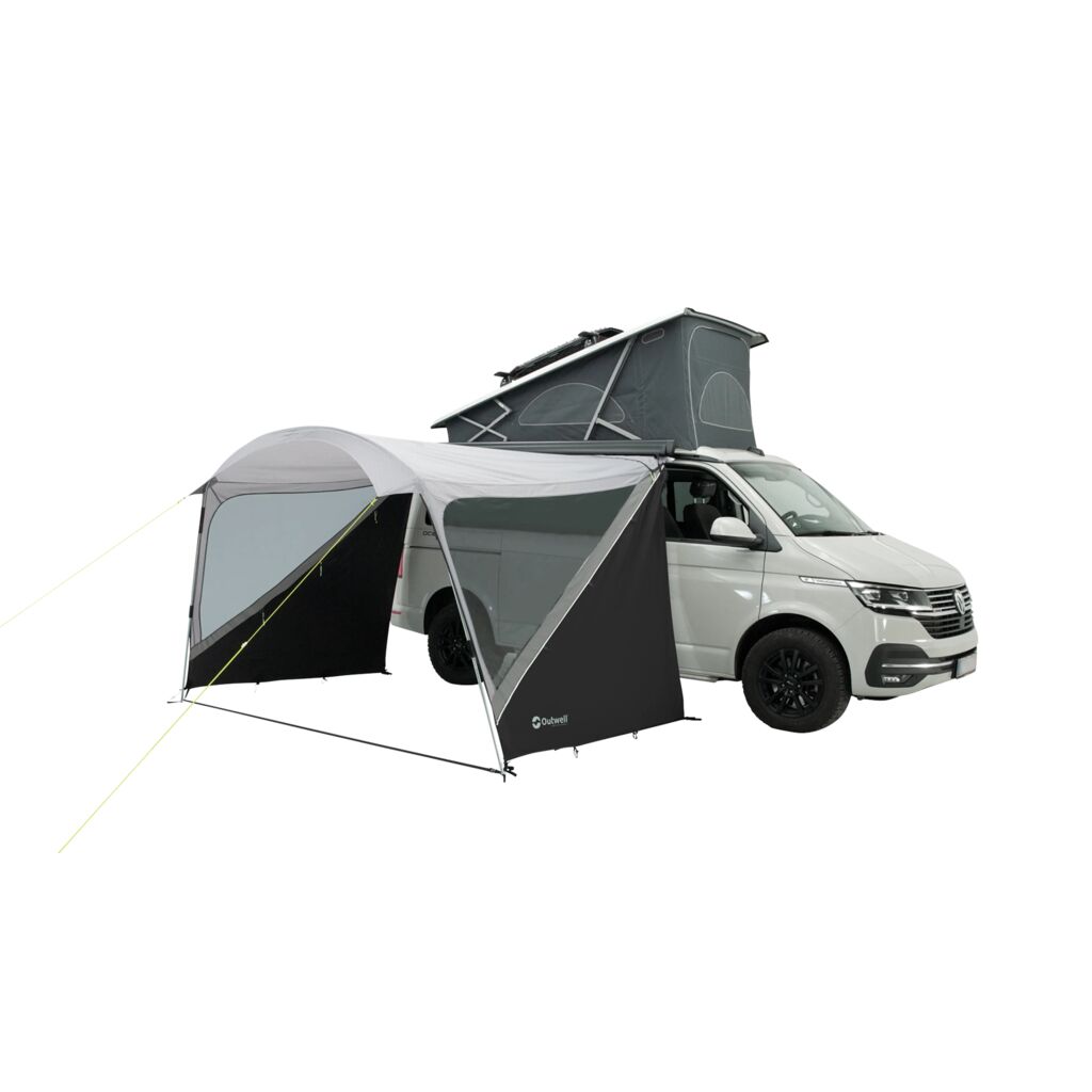 Outwell Touring Shelter quickly creates a comfortable and sheltered outdoor space beside your vehicle. This universal sun canopy is perfect for motorhomes, vans and minibuses, providing a cool and shaded spot to relax during your camping trip. The roll-up sides and large tinted windows offer flexibility, natural light and protection from sun and wind. The sturdy steel poles maximise headroom and create a spacious feeling under the shelter. Touring Shelter is also developed for VW T5/T6/T6.1 and Mercedes V-Class/Vito and similar vehicles, making it a perfect accessory for vanlife and spontaneous adventures. Thanks to the smart design, it is quick and easy to set up and take down when needed.