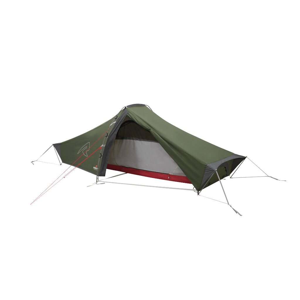 Robens Starlight 1 is easy to pitch using a continuous pole that supports the fabric along with four pre-attached supports. The tent can be pitched with the inner tent already attached, which helps keep it dry in rainy conditions. It also features easily adjustable ventilation and a porch area for gear storage.