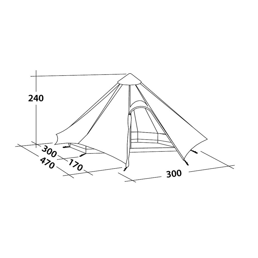 Smaller tipi tent suitable for the family or a group of up to seven people. Very easy to pitch with a centre pole and a good surface for storage between door and sleeping area. The shape and construction also make it very resistant to wind and they have been tested against wind speeds of up to 190 km / h.