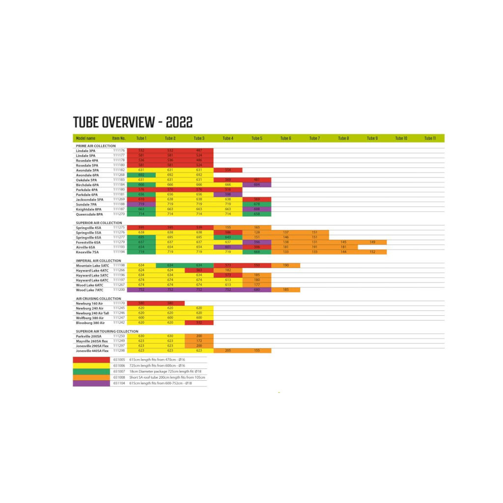 | Content | 1 Air Tube 6.00 - 7.55 m, 1 Air Tent Valve, 1 Valve Tooxl, 2 x adhesive tape strips |